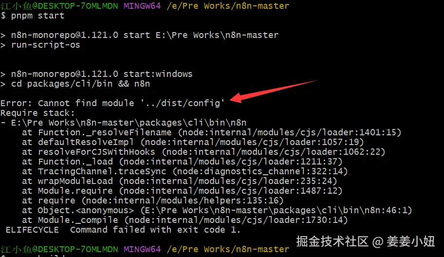 当使用pnpm start命令运行项目后出现非模块的问题,如果出现 Error: Cannot find module '../dist/config'如下