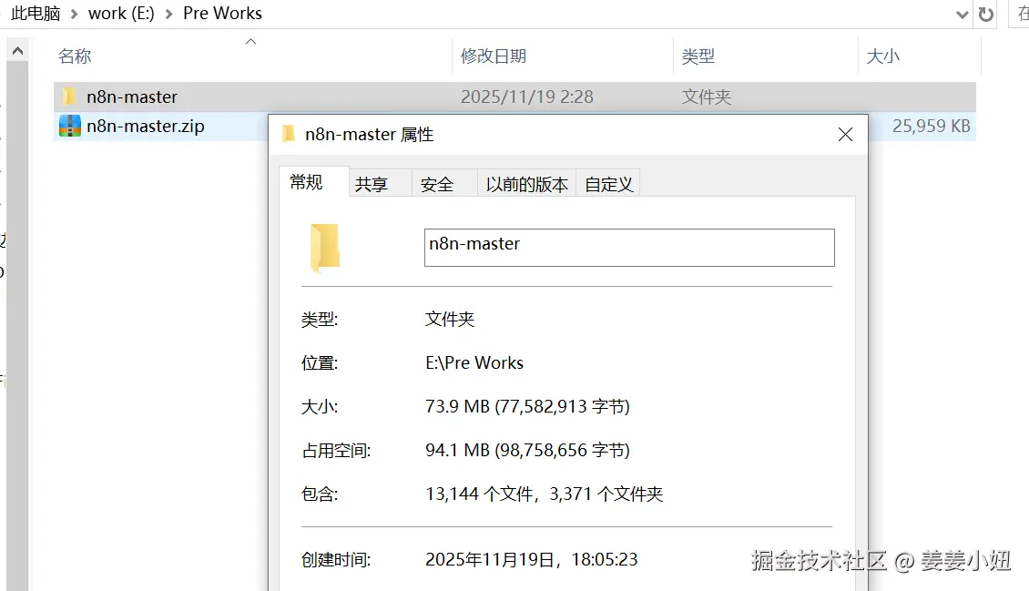 把下载好的压缩包(25M左右)解压到n8n-master(73.7M左右)