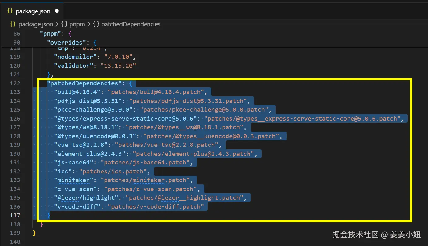 可以先删除package.json文件夹中的patchedDependencies字段内容,