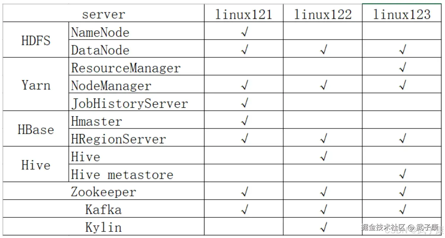 - 场景:3 节点(h121/122/123)资源吃紧环境,部署 Apache Kylin 3.1.1(HBase1.x 版)。