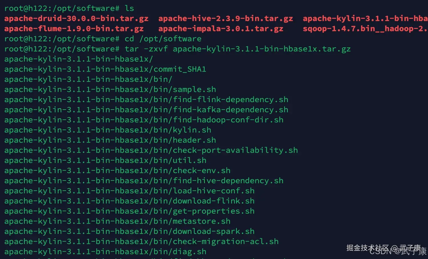 tar -zxvf apache-kylin-3.1.1-bin-hbase1x.tar.gz