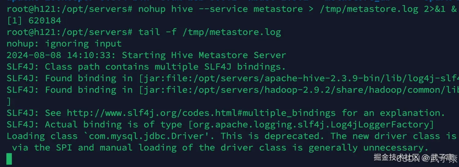 nohup hive --service metastore > /tmp/metastore.log 2>&1 &