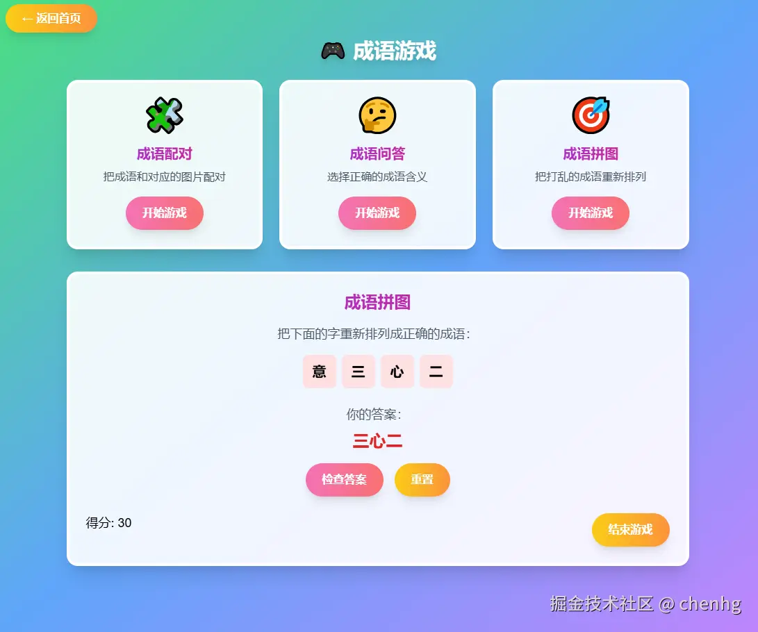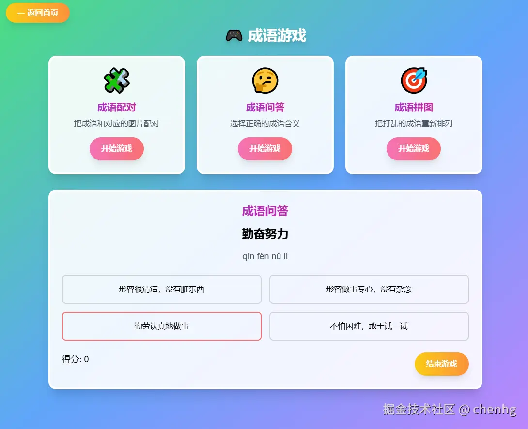 虽然 SOLO Builder 快速完成了成语学习H5的核心构建和逻辑实现,但若要达到更佳的效果,仍需在以下方面投入更多精力: