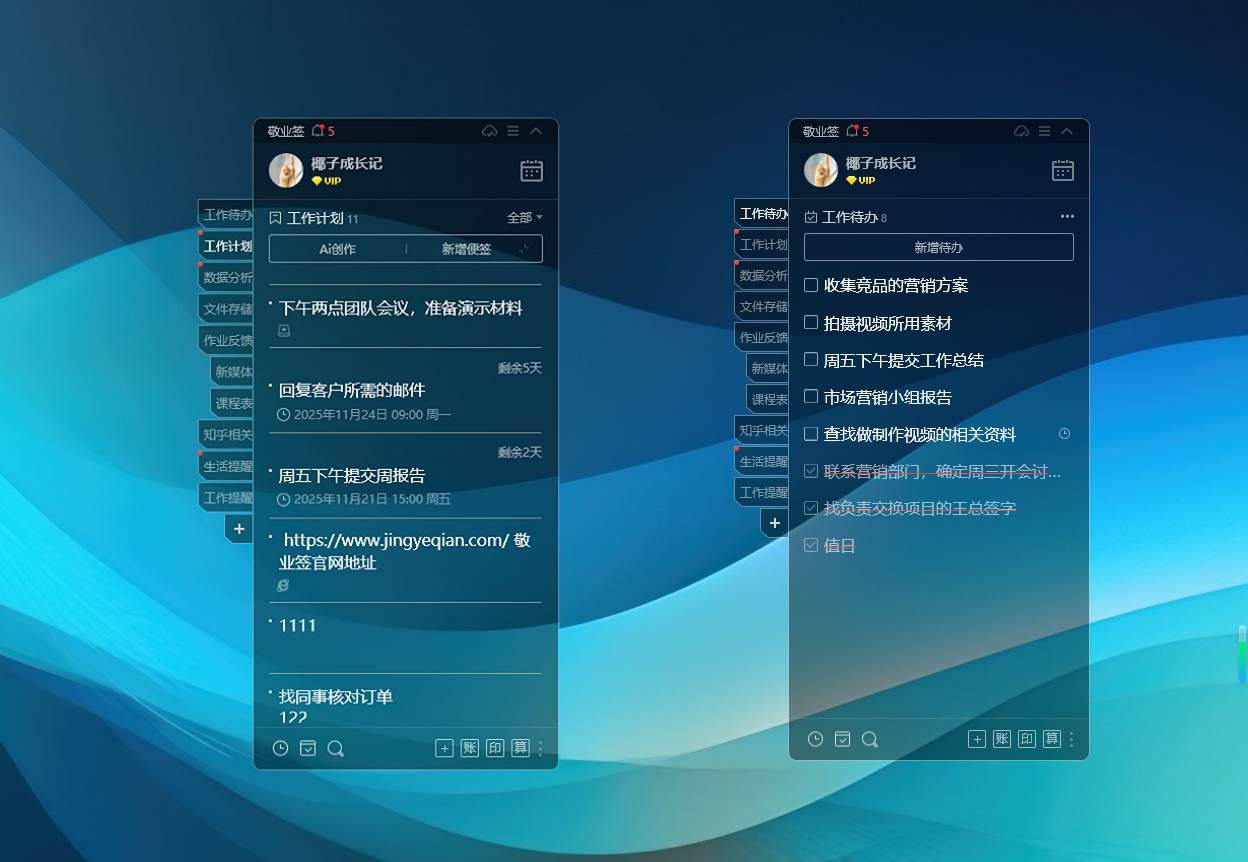 敬业签提供了待办分类和便签分类两种模式,不管是需要明确执行步骤的任务,还是随手记录的临时事项,都能找到合适的记录方式。