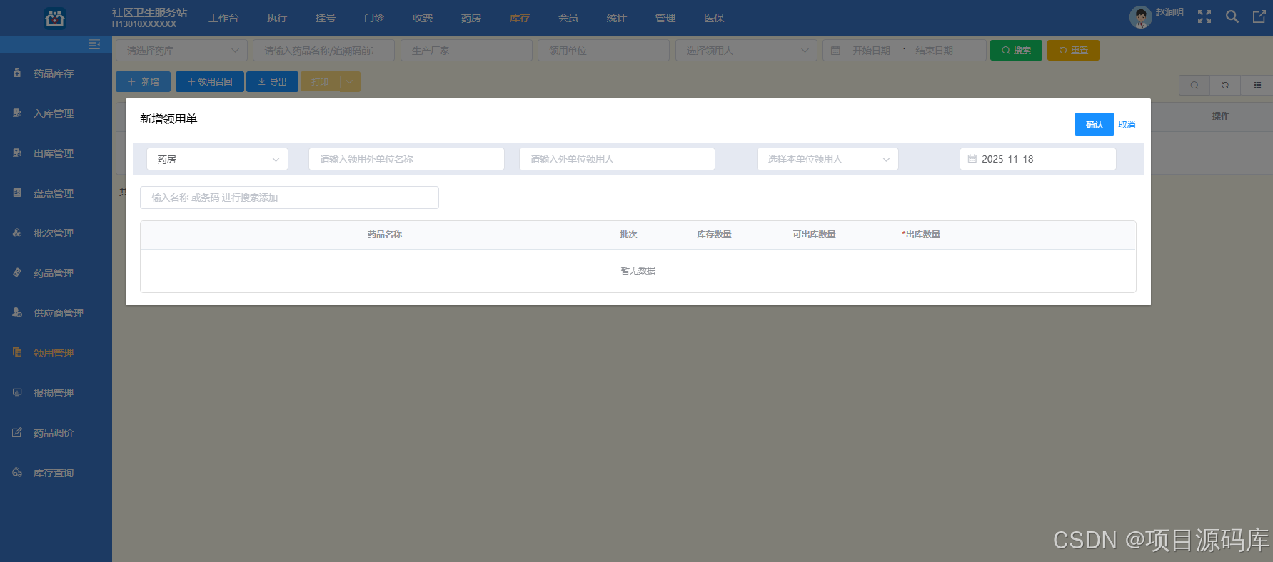 药品出库、药品入库记录可清晰查询,药品信息维护、药品厂商维护。可以实现报损出库、领料出库、退货出库等管理,对药品库存盘点、库存报警等管理。