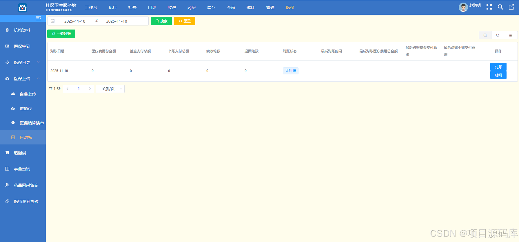 功能包括:机构资料、医保签到、医保目录、医保上传、字典查询、药品网采备案、医师评分考核、追溯码。