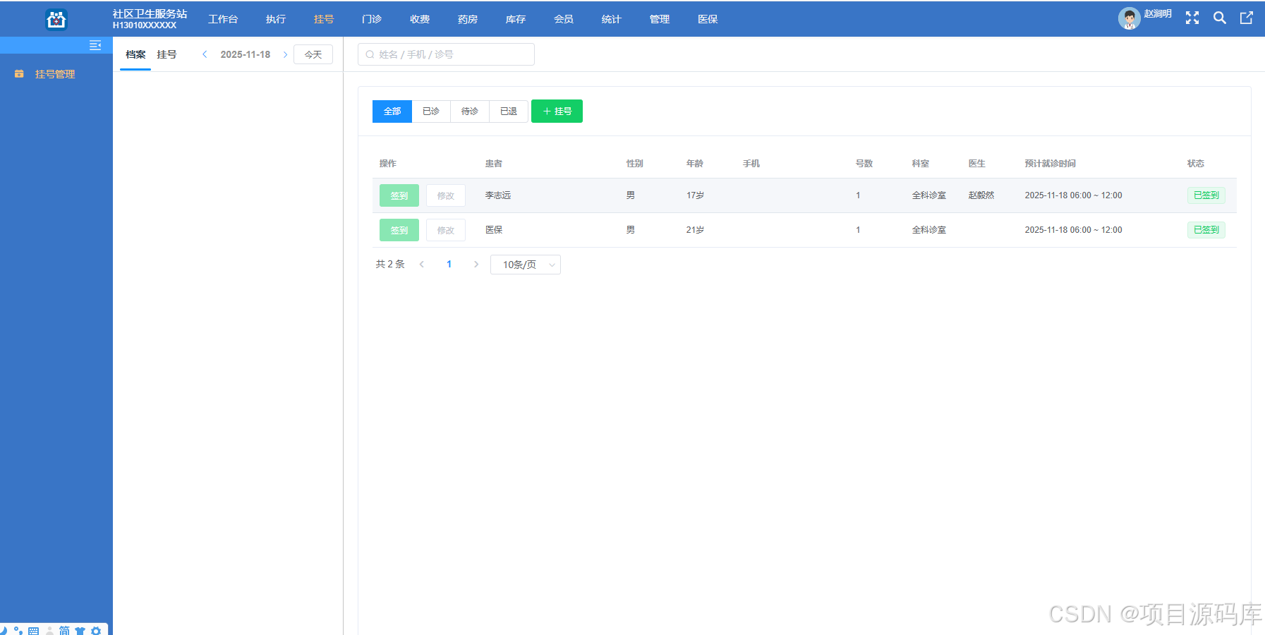 1、挂号登记: 记录患者的基本个人信息,为后续的医疗服务提供准确的数据基础。
