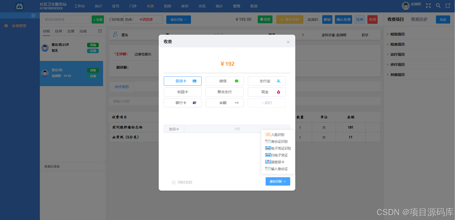 为方便登记患者信息,可使用身份证读卡、医保读卡、电子医保扫码、电子健康码功能,可直接通过读卡控件读取患者个人信息。
