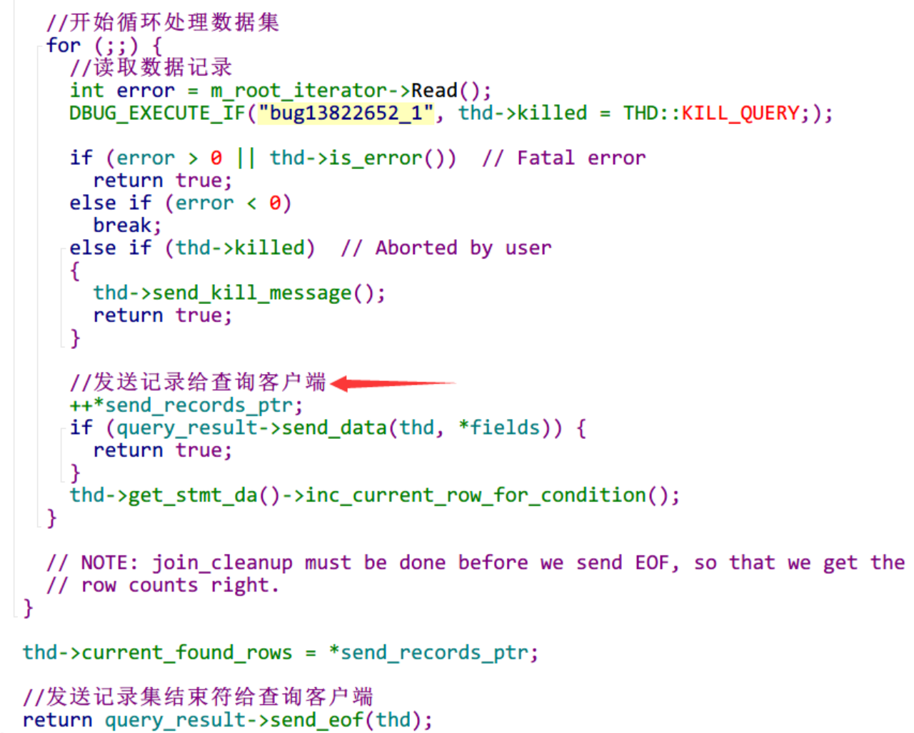 这一点从 MySQL 的源码 sql_union.cc 中其实可以看得很清楚,这样处理有两个好处:服务器端无须存储太多的结果,也就不会因为要返回太多结果而消耗太多内存。另外,这样的处理也让 MySQL 客户端第一时间获得返回的结果。