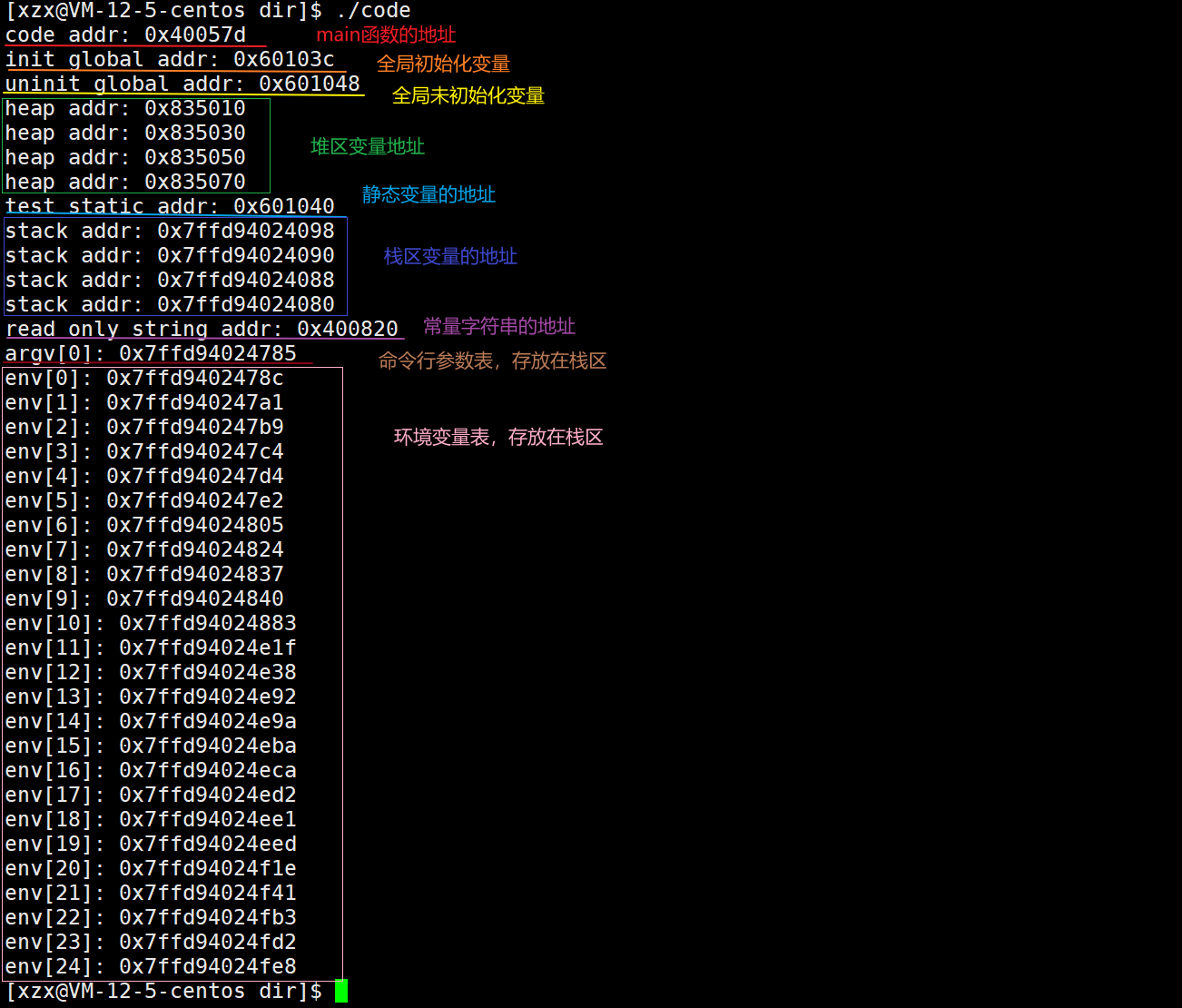 的实际内存地址每一次运行都是不确定的,比如:第一次执行a.out时候,内存当中一个进程