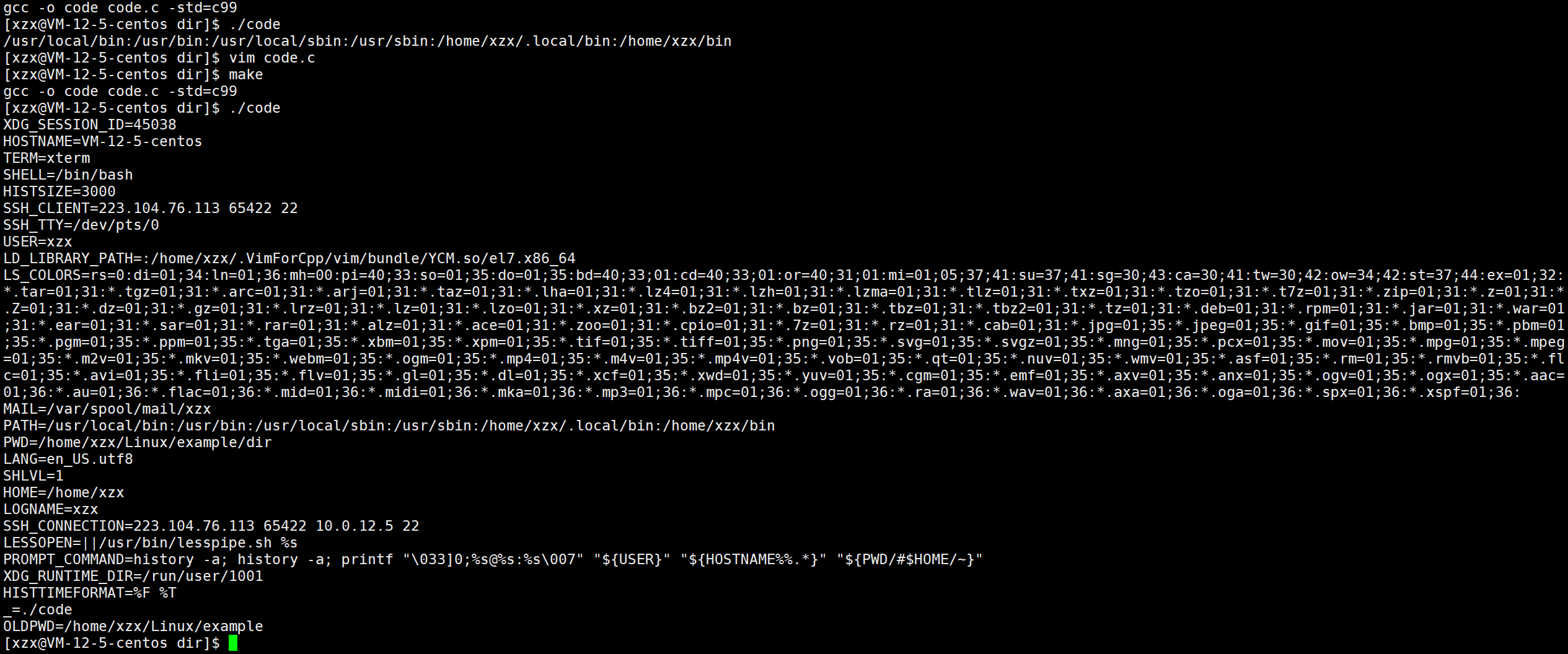 我们还可以通过系统调用来在代码中获取环境变量的值。
