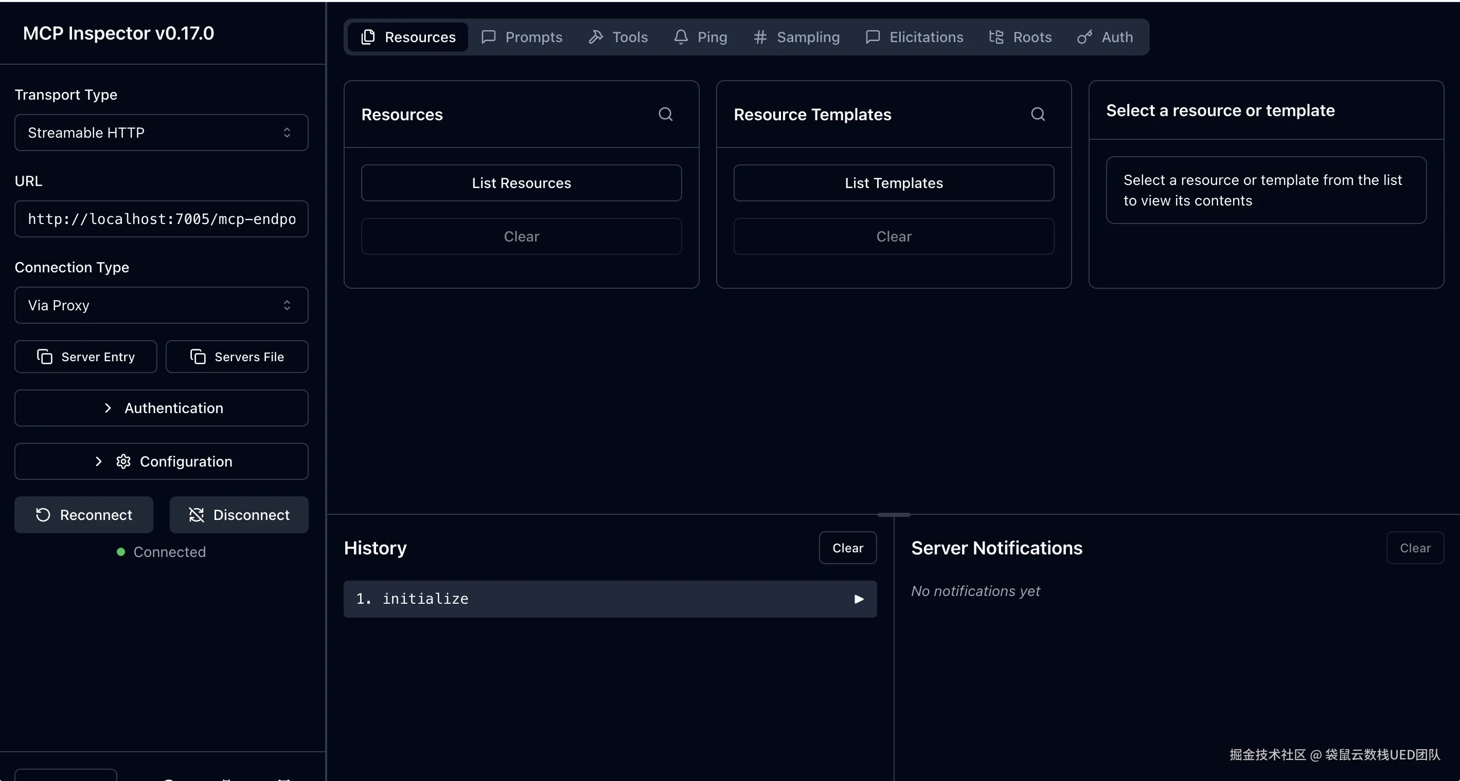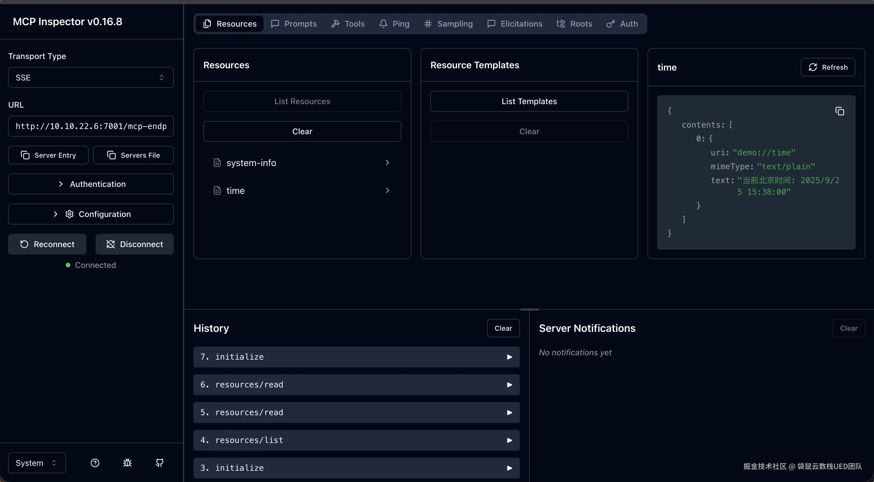 - 添加并初始化一个MCP Server,根据Nacos中的配置与该MCP Server建立连接,等待调用。