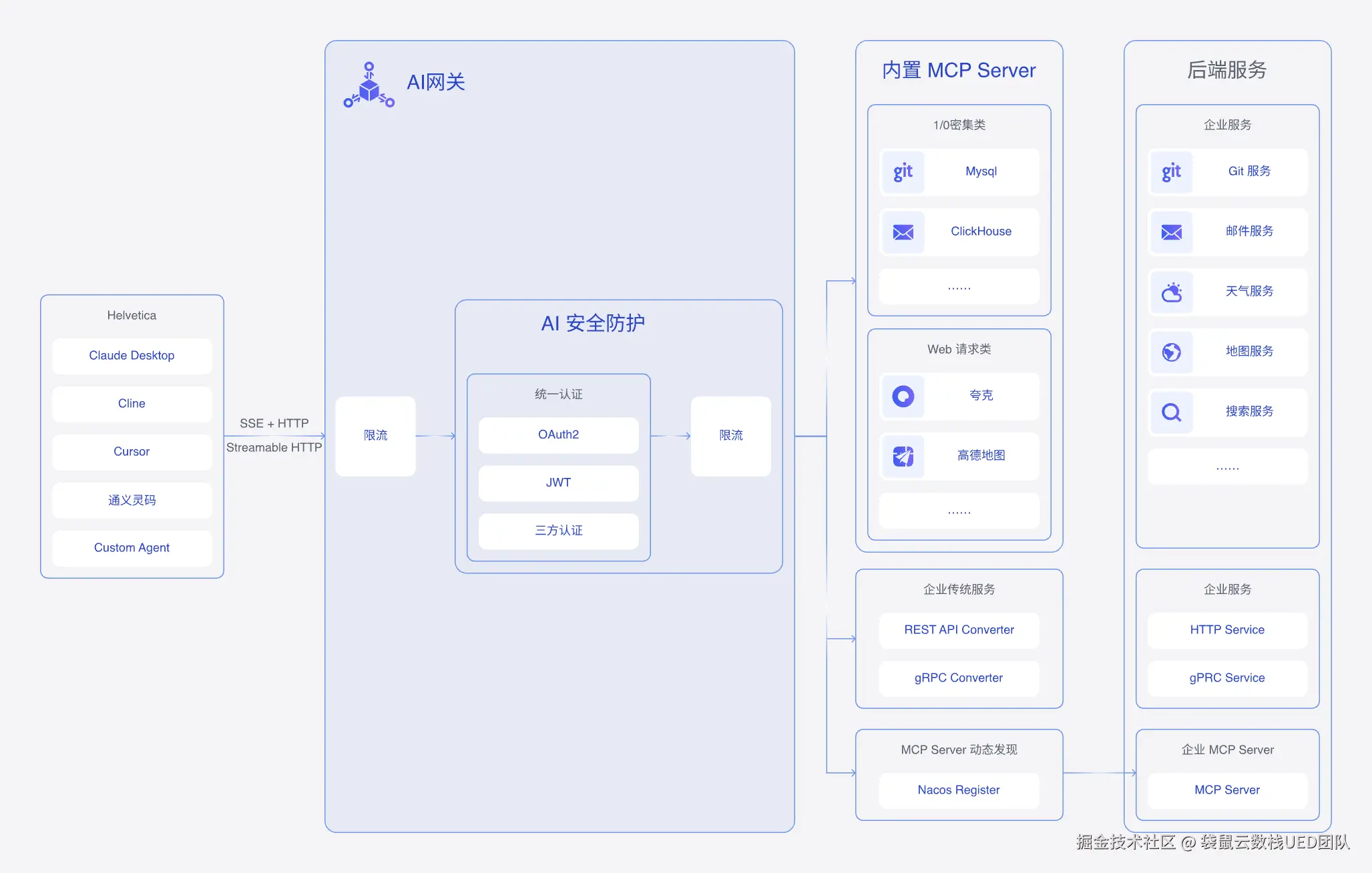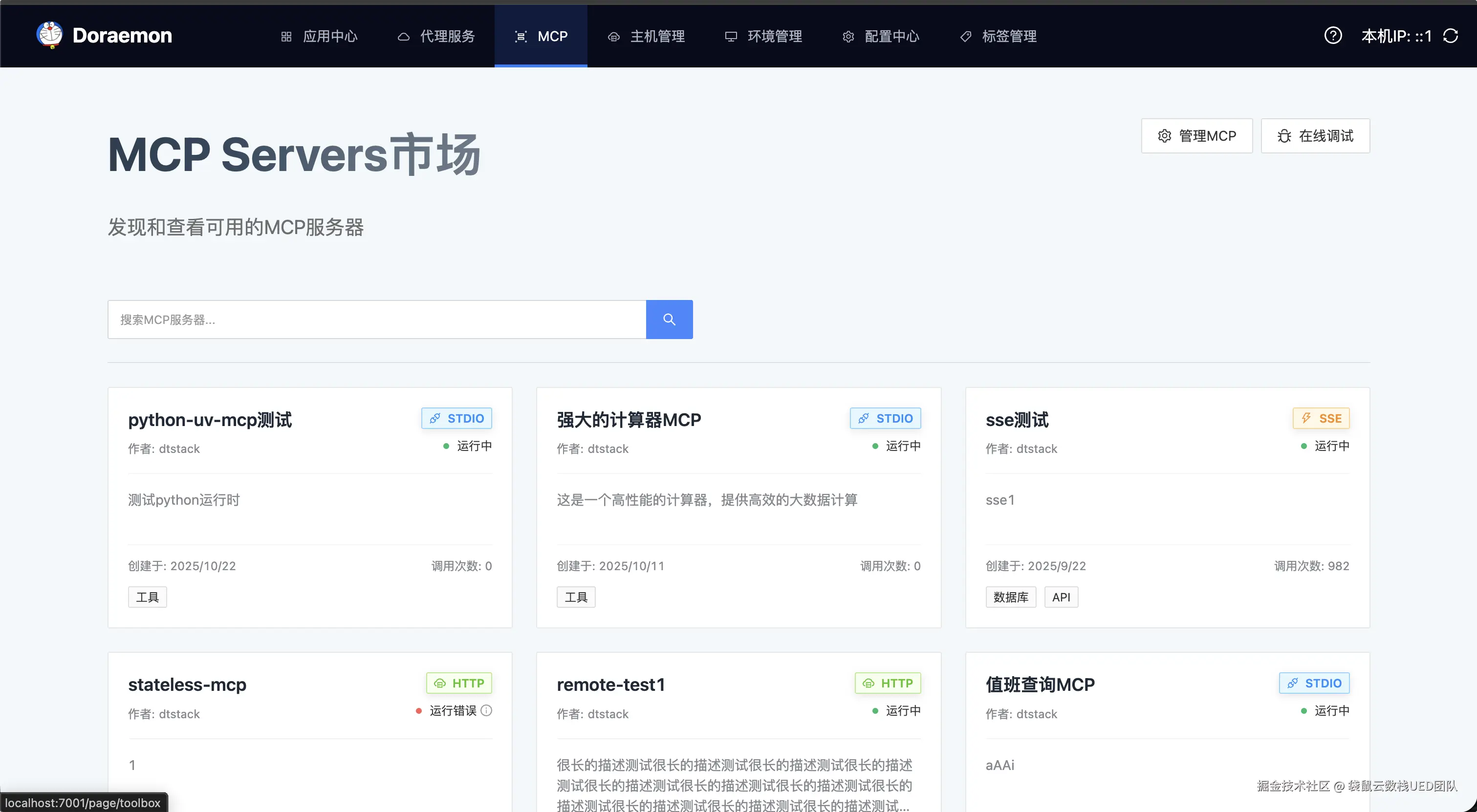 MCP-Server市场中心能够整合内部各团队或个人实现的MCP-Server,提供统一的Streamable HTTP协议访问端口,快速的整合MCP资源。