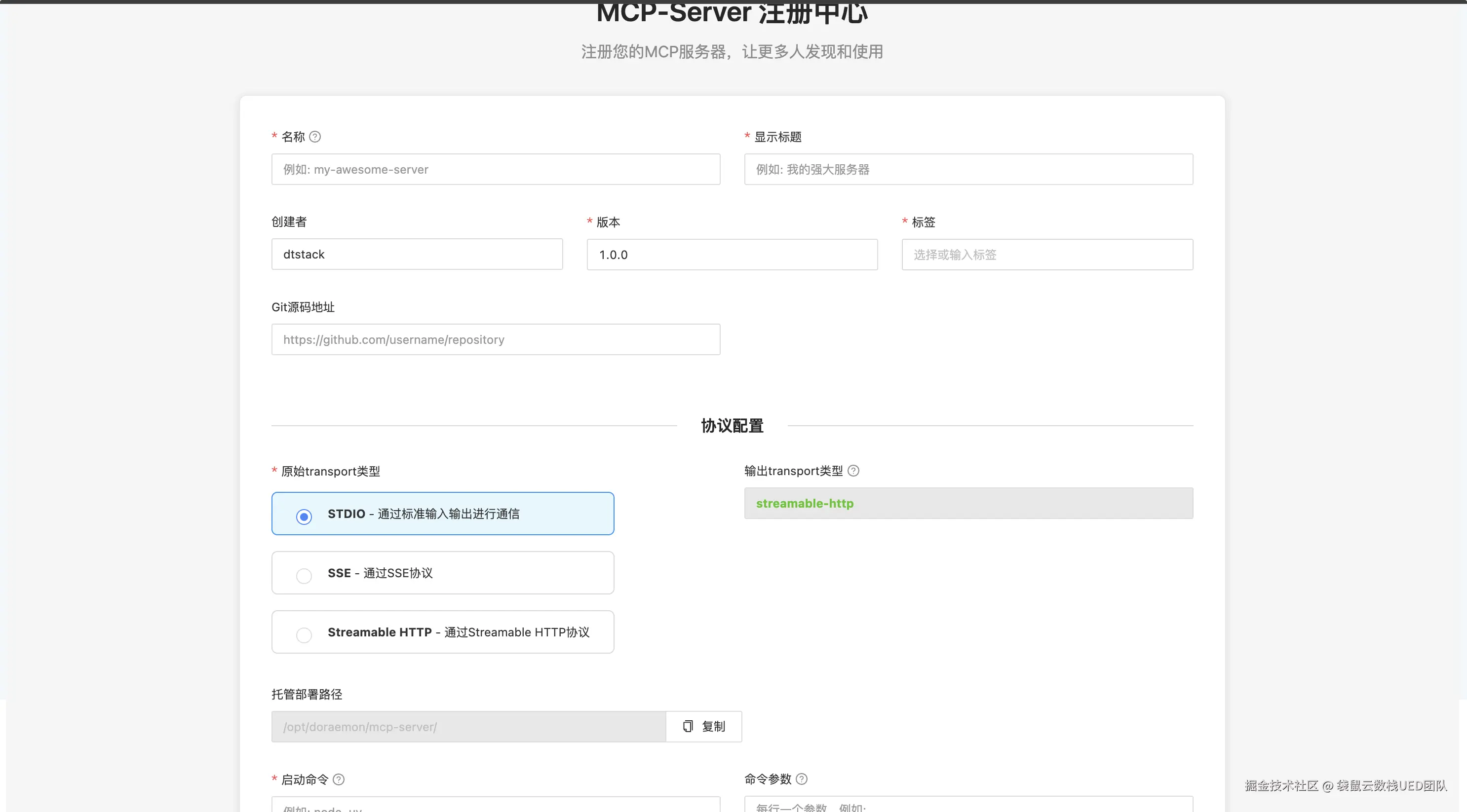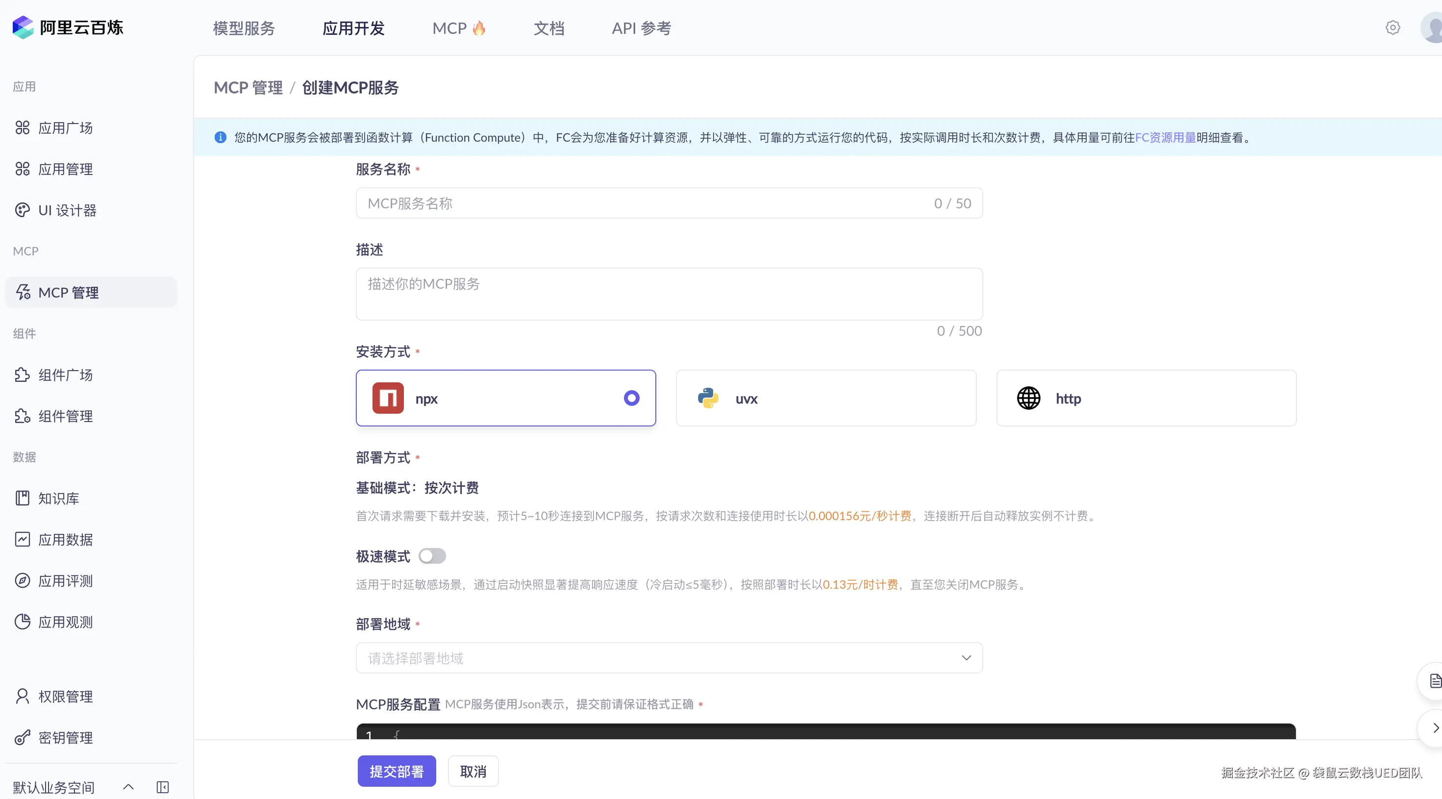 MCP注册中心 - 发布自己实现的MCP,针对 Stdio 类型MCP Server,提供资源部署服务