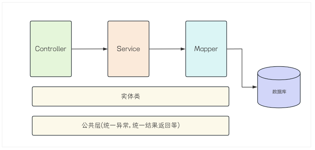 项目分为控制层(Controller),服务层(Service),持久层(Mapper).各层之间的调用关系如下:
