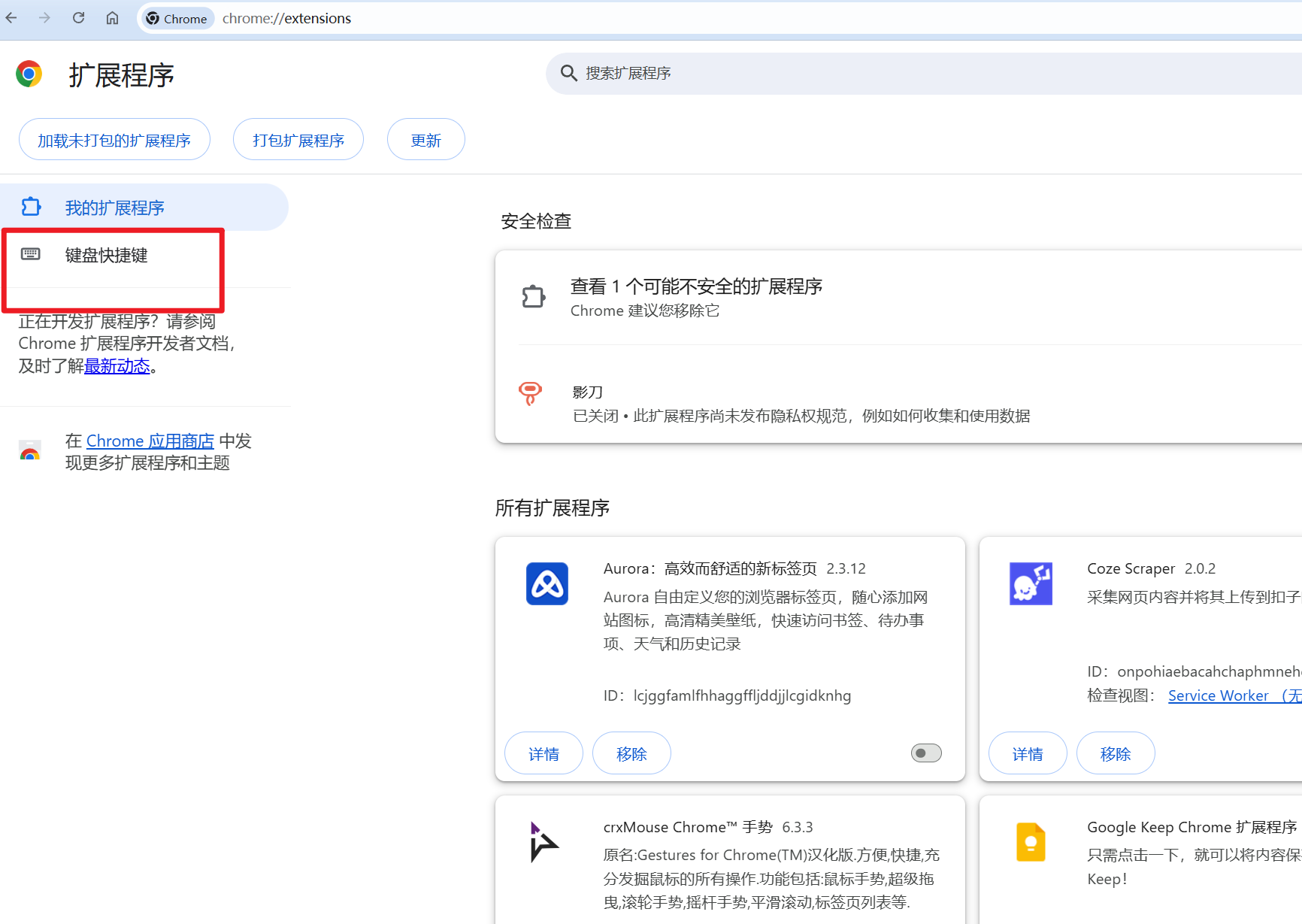 - 快捷指令:直接在地址栏输入 chrome://extensions/,回车跳转,省去多步点击,适合高频操作。