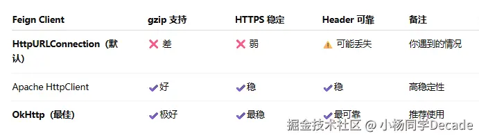 2、Feign 默认使用 JDK 自带的 HttpURLConnection 作为 HTTP Client,不支持处理gizp
