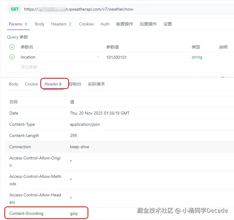 1、这个第三方api的响应开启了gzip压缩,响应体是 gzip 压缩的