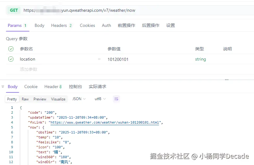 3、使用上述的feign调用第三方api,报错:401 & 乱码,而通过断点排查,调用api的header和参数都是正确的 feign.FeignException$Unauthorized: [401] during [GET] to [https://xxx.yun.qweatherapi.com/v7/weather/now?location=101200101] [IWeatherApiService#getWeatherNow(String,String)]: [��U̱� �_!�ZA'6W ���r�84�鿋n�ox3 31��8��n��@��B�5&�S?^�$"kOw��X��G�;֞�UͮJ$No Т$�w��s@qih�o�Y�w�(�[S ��}��֫��j��cV��HE4,���N��] at feign.FeignException.clientErrorStatus(FeignException.java:197)