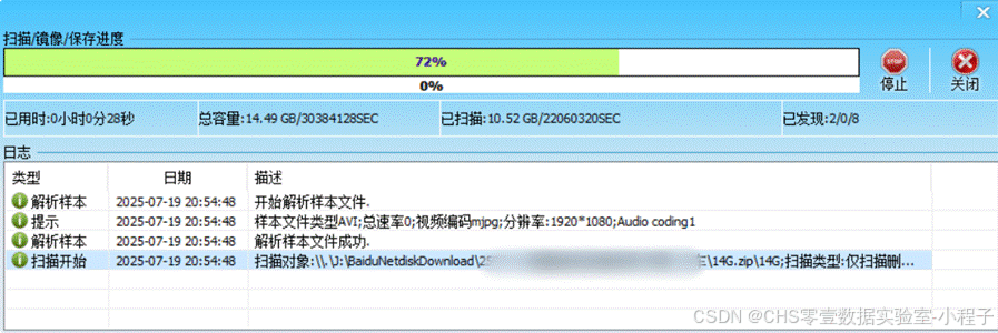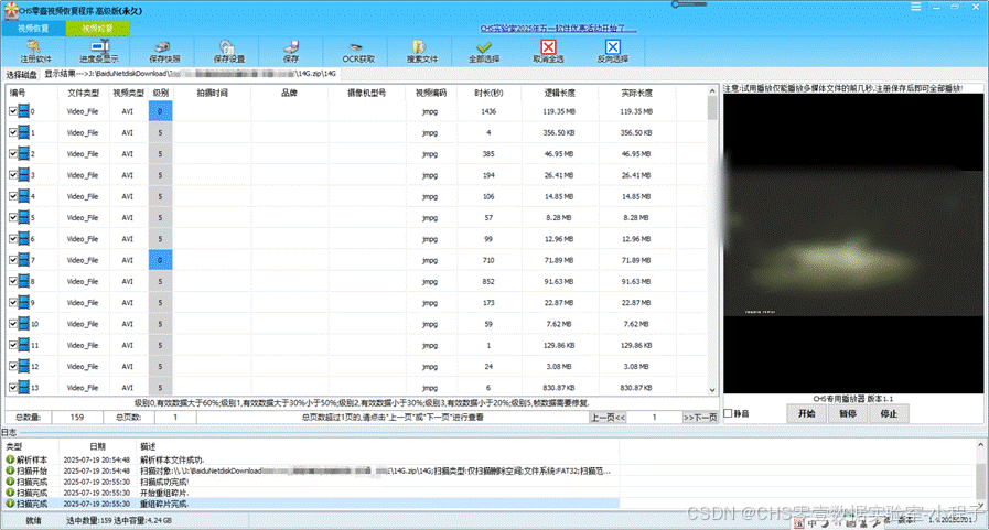 图4:CHS零壹视频恢复程序高级版扫描结果