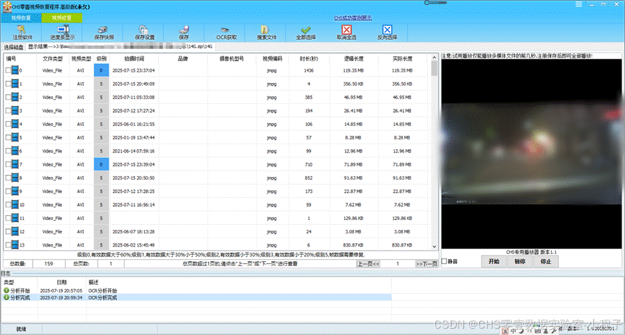 STEP5:由于文件数量比较多,为了方便客户查找文件,所以进行了OCR操作。点击OCR然后点击开始,这样就可以获取画面中的时间了。