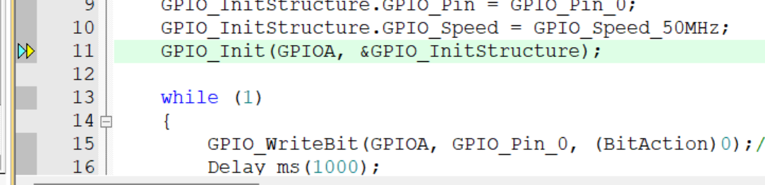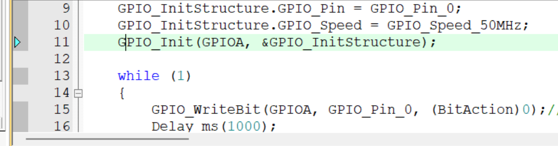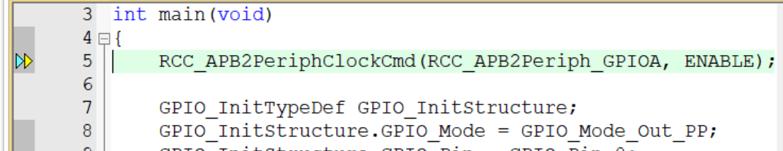 我们再点击"运行到光标指定行",黄色光标就跟上来了