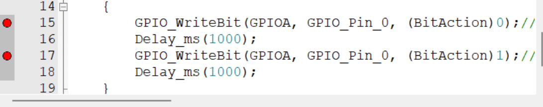 我们可以点击程序左边这里深灰色的区域,设置断点(就是红圆点)
