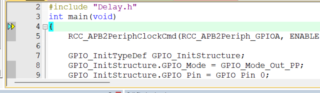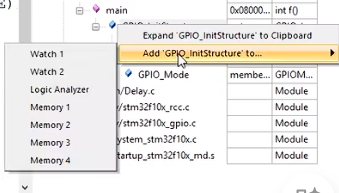 如果想看一下结构体值的变化,可以在 GPIO_InitStructure 右键,添加到Watch 1 窗口