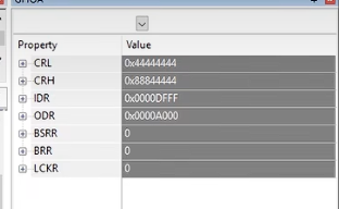 比如我们选择GPIOA,右边这里就会显示GPIOA外设的所有寄存器
