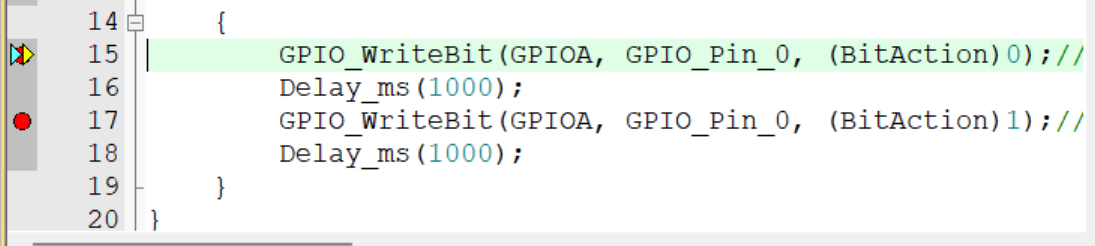 然后点击全速运行,程序就会一直运行,直到断点停下
