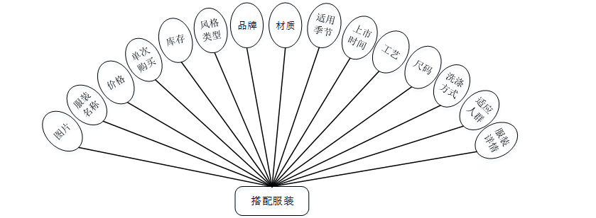 为了更直观阐明数据库的设计,使用 Vision 绘制的服装搭配推荐系统数据模型E-R实体属性图。根据系统需求设计了以下几个主要实体。