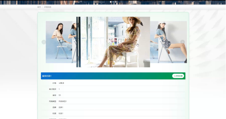 服装信息管理:系统提供丰富的服装信息,包括服装名称、品牌、风格类型、适用季节、材质、尺码等详细信息,方便用户查询和筛选。