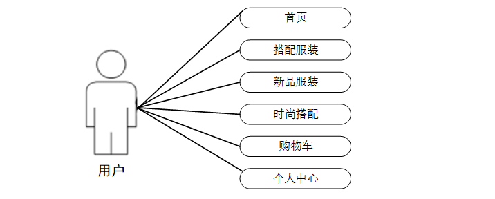 (3) 用户可以在前台浏览首页、搭配服装、新品服装、时尚搭配、购物车、个人中心等信息,用例分析如图3-3所示。