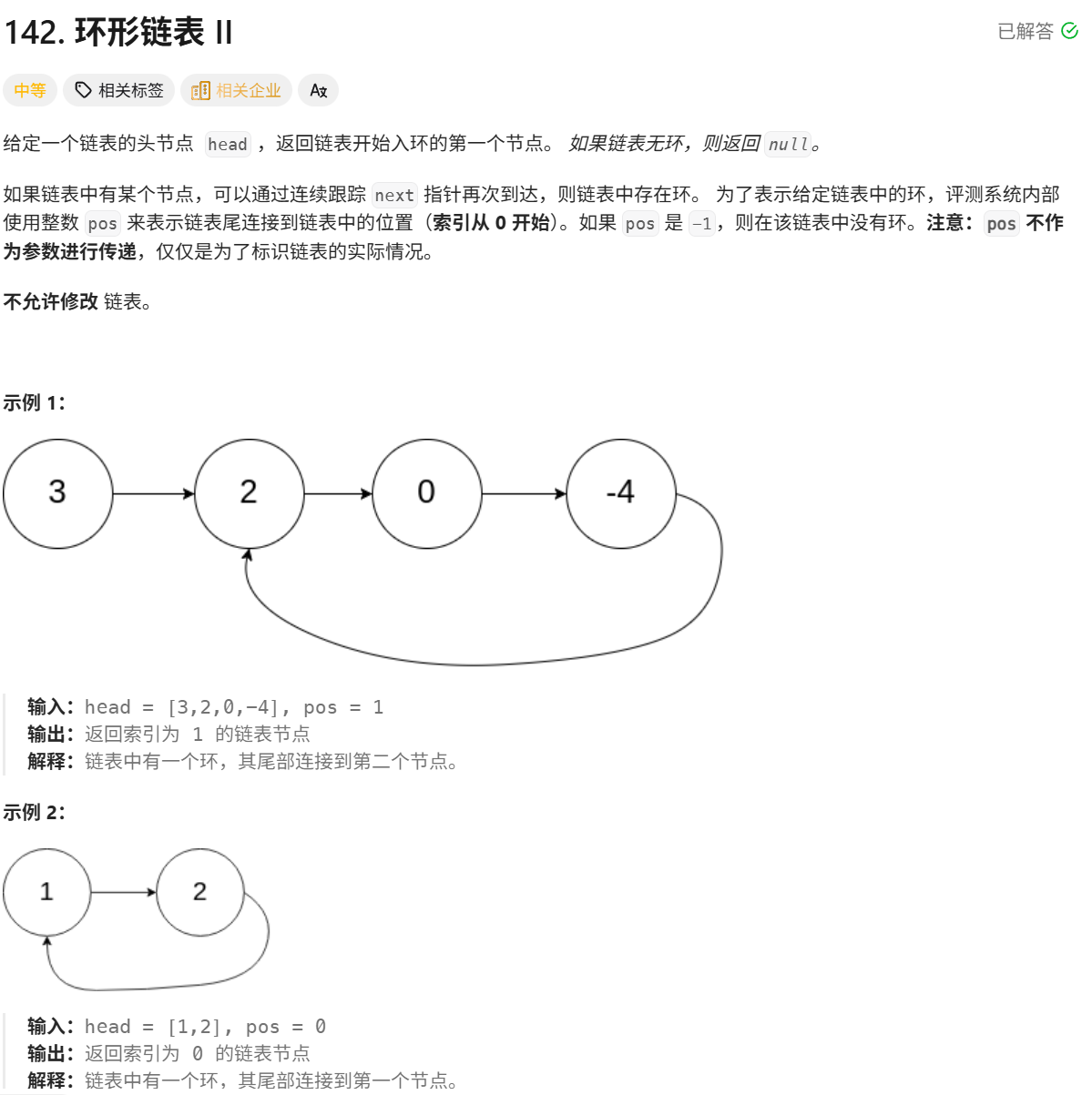 五、链表算法OJ题5:环形链表的入环节点