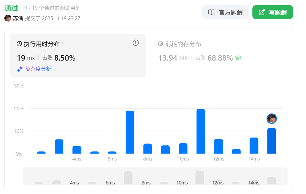 本道题具体可以参考我在刷题专栏中2025年11月19日的刷题记录,里面有详细的刷题记录,这里仅粘贴代码,不再赘述。