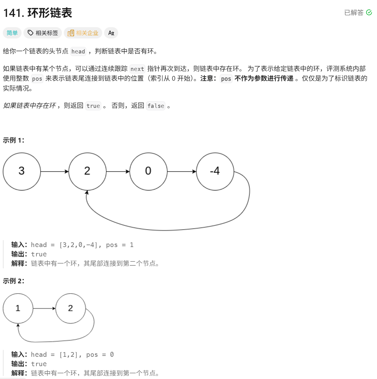 四、链表算法OJ题4:环形链表