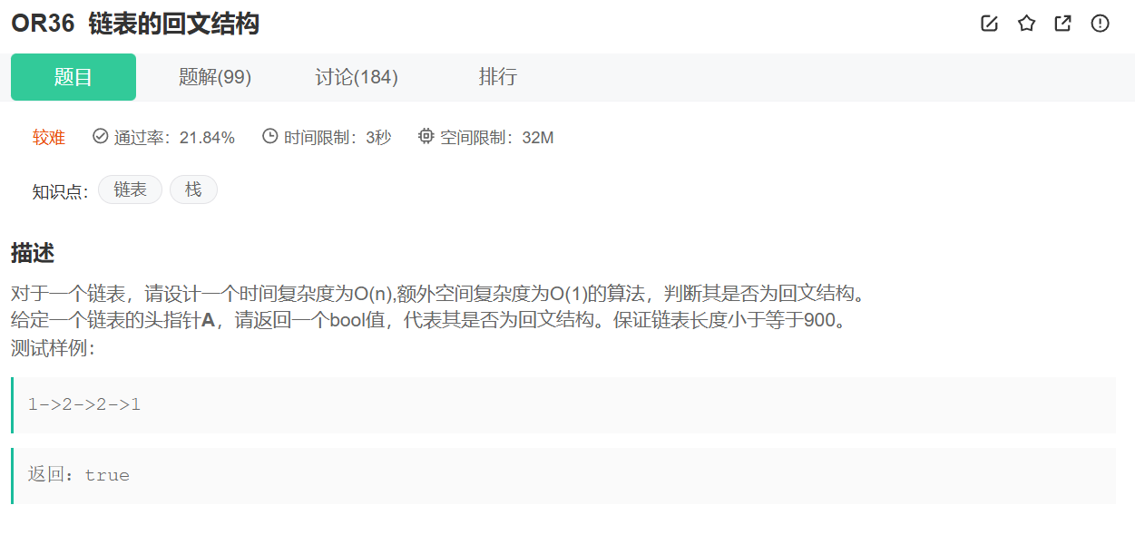 二、链表算法OJ题2:链表的回文结构
