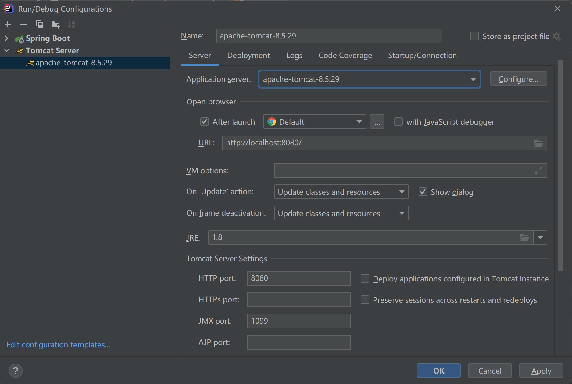 然后我们就可以和之前的ssm项目一样配置tomcat了: