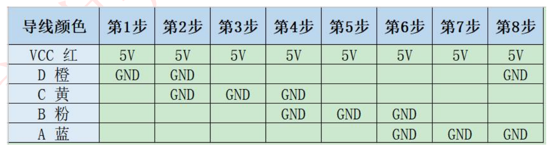 注意事项:将步进电机红色线对接到"步进电机模块"输出端子 J47 的 5V 上,其它相序依次接入。