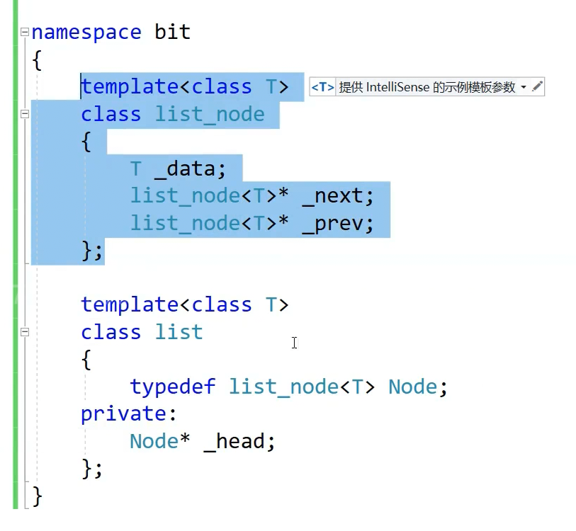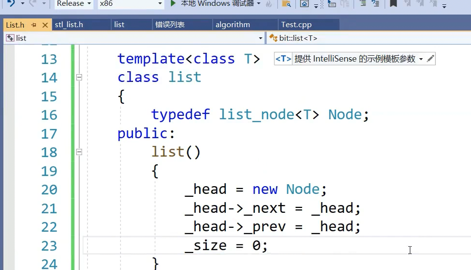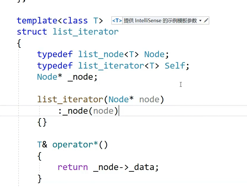节点的指针就能构造一个迭代器,还差一个构造函数