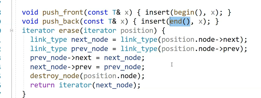 insert要求传迭代器,end就是head,再看一下erase,前后位置一链接,