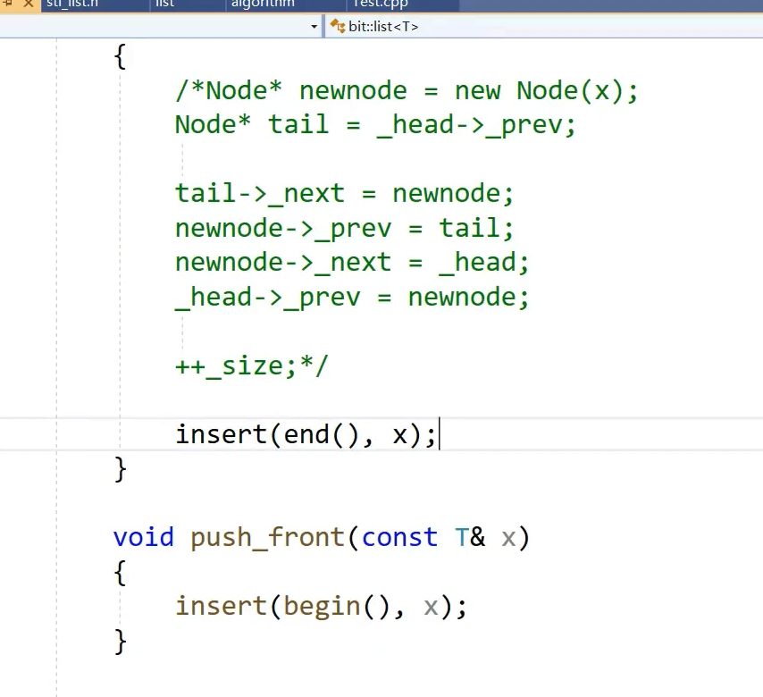 这时候push back 和pushfront不需要自己写了复用insert