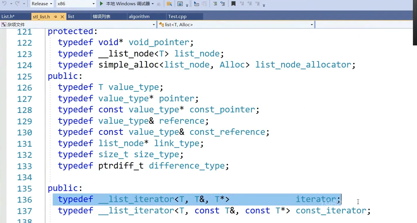 list底层:看看源代码:链表list内有很多