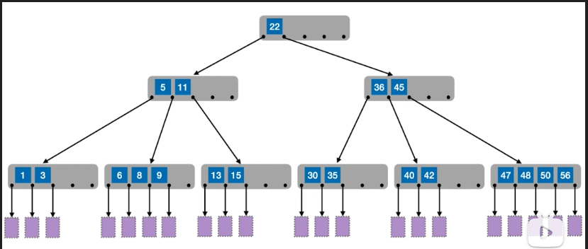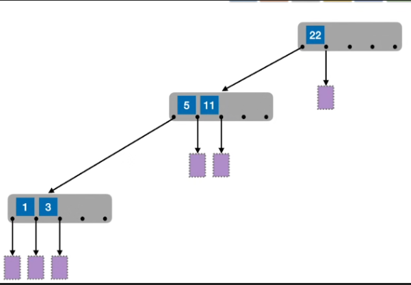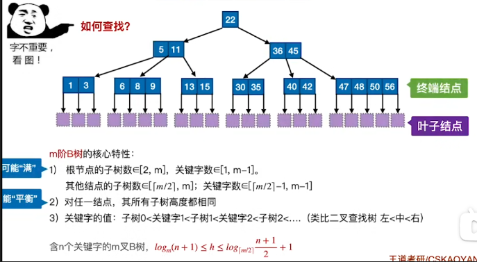- 关键字的值:子树0<关键字1<子树1<关键字2<子树2<......(类比二叉查找树左<中<右)