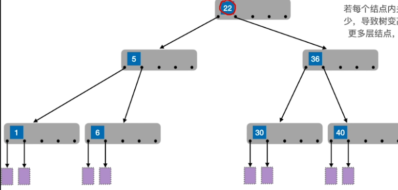 - 若每个结点内关键字太少,导致树变高,要查更多层结点,效率低