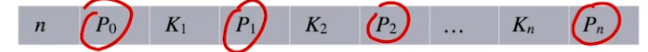 其中, K i ( i = 1 , 2 , ... , n ) K_{i}(i=1,2,\dotsc,n) Ki(i=1,2,...,n)为结点的关键字,且满足 K 1 < K 2 < ... < K n ; P i ( i = 0 , 1 , ... , n ) K1<K2< \dotsc < Kn; P i(i=0,1, \ldots,n) K1<K2<...<Kn;Pi(i=0,1,...,n)为指向子树根结点的指针,且指针Pi-1所指子树中所有结点的关键字均小于Ki ,Pi所指子树中所有结点的关键字均大于Ki , n ( ⌈ m / 2 ⌉ − 1 ⩽ n ⩽ m − 1 ) n(\lceil m/2\rceil-1 \leqslant n \leqslant m-1) n(⌈m/2⌉−1⩽n⩽m−1)为结点中关键字的个数。 - 所有的叶结点都出现在同一层次上,并且不带信息(可以视为外部结点或类似于折半查找判定树的查找失败结点,实际上这些结点不存在,指向这些结点的指针为空).