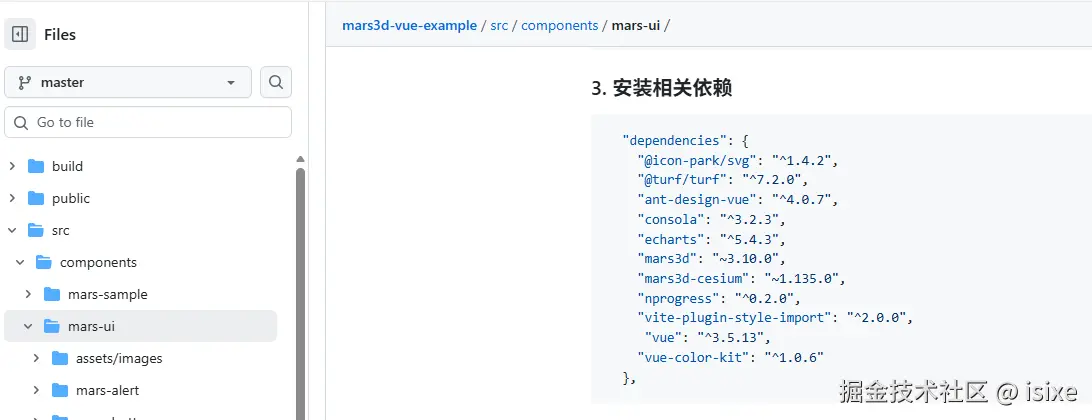 虽然在 mars3d-vue-example 中列出的相关依赖,但是这并不完全