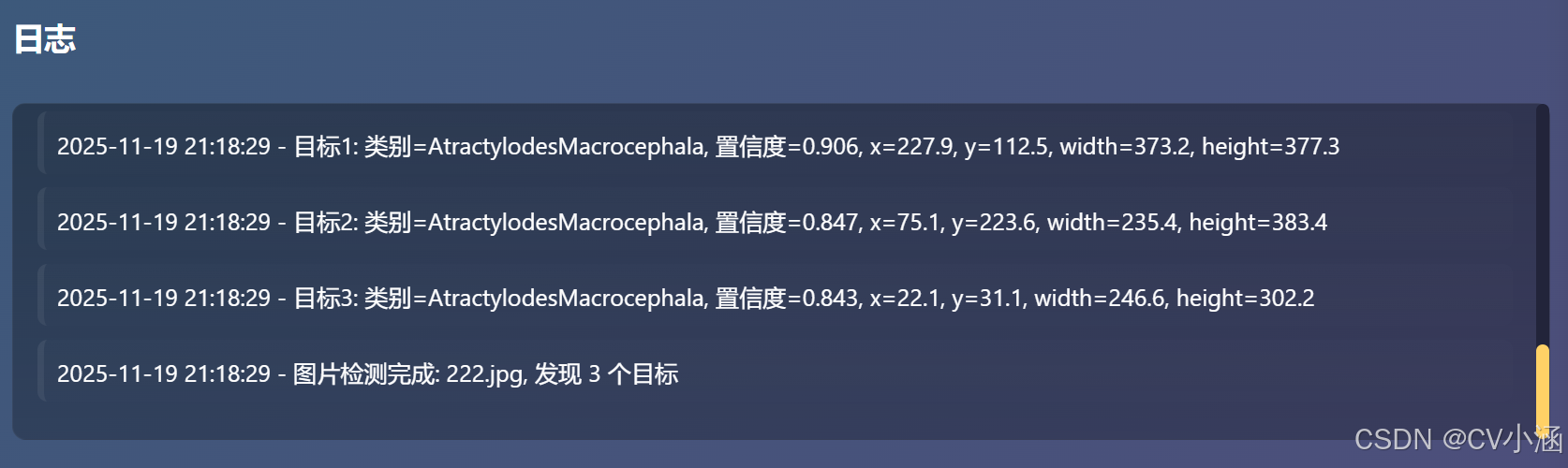 前端集成日志区,实时显示模型加载、推理、文件上传等操作的进度与结果。