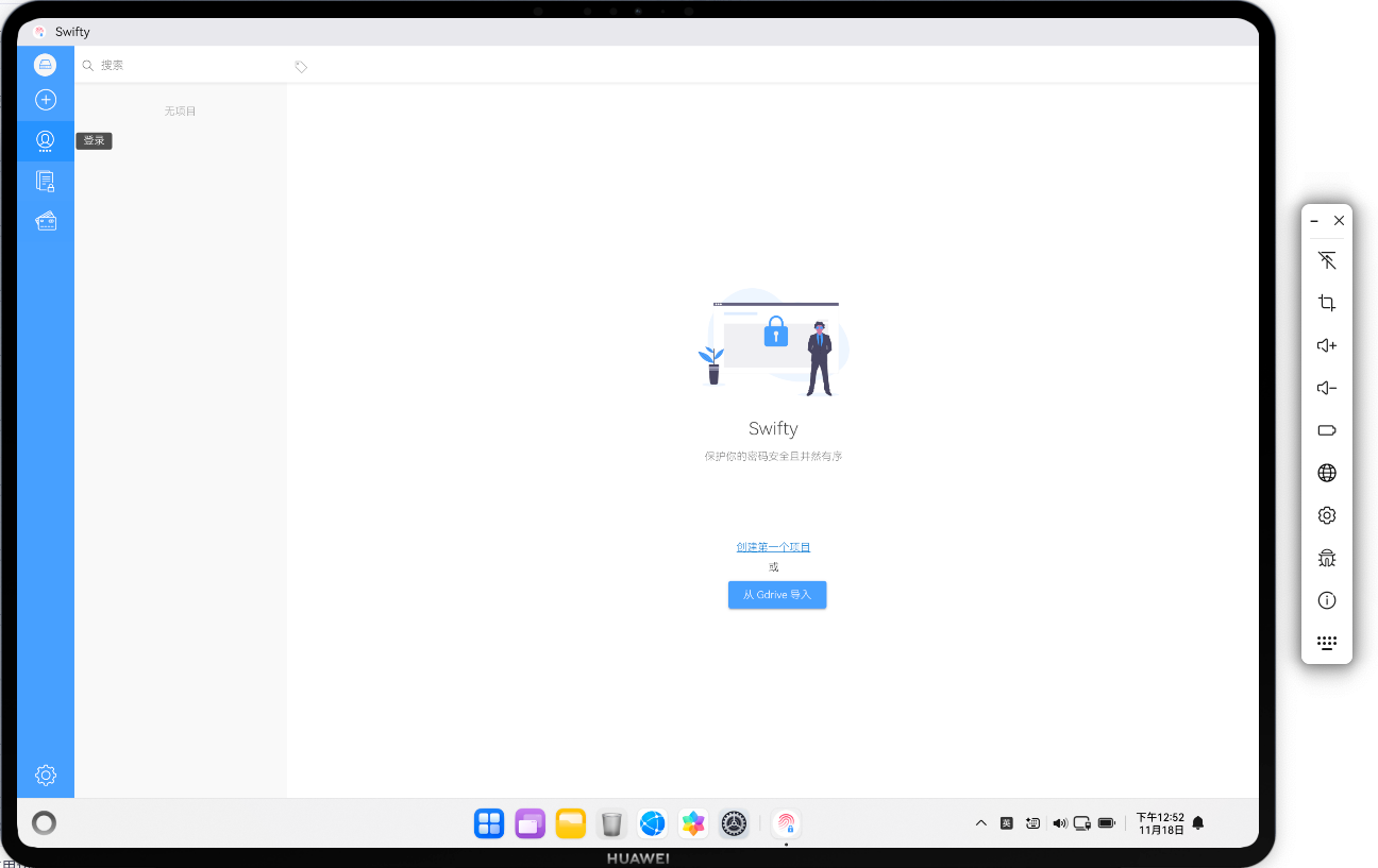 以下是 Swifty 密码管理器在 HarmonyOS PC 平台上的运行效果: