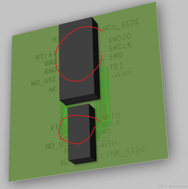 但是默认3D预览板子时,如果没有3D模型的stepfile, 会将元件显示为黑立方体,实际上这个黑立方体就是代表元件(占位面积和元件高度)。